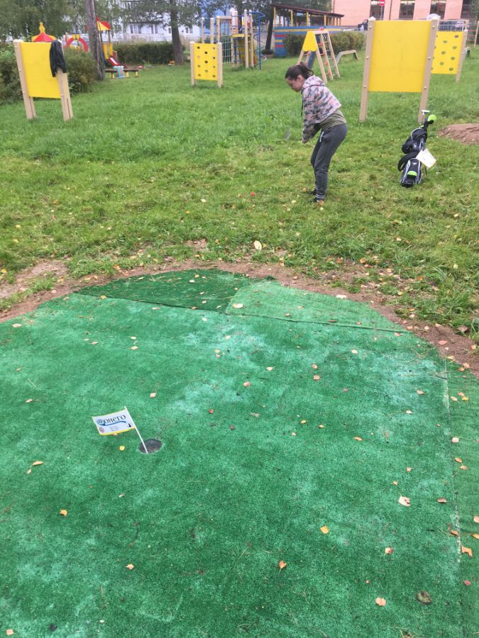 На территории МБДОУ"Подпорожский детский сад№12 общеразвивающего вида с приоритетным осуществлением деятельности по физическому развитию детей(руководитель Любовь Геннадьевна Матькина)было построено гольф-поле с З(тремя)гольф-лунками,стартовыми площадками(ти) и бункерами,дистанция лунок-19м,12м и 16м .Будет продолжено дальнейшее благоустройство этой гольф-инфраструктуры.